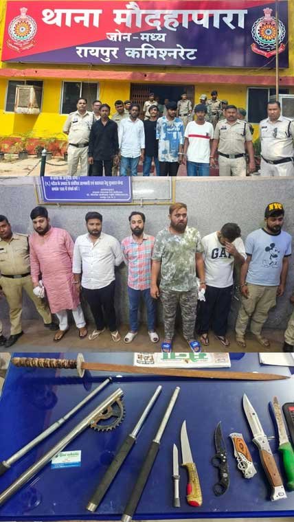 - ACCU एवं थाना मौदहापारा की संयुक्त कार्रवाई में 24 घंटे के भीतर 12 आरोपी गिरफ्तार, भारी मात्रा में धारदार हथियार बरामद